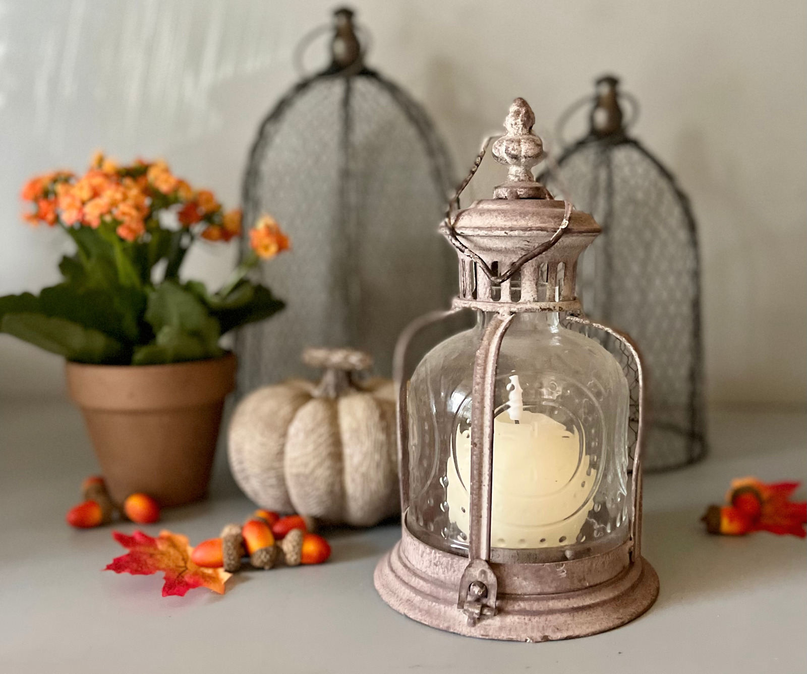 Crafted from aged alabaster white metal. Chippy and charming antique style. Decorate your patio or conservatory by simply placing a pretty plant inside or for a warm glow on a summer evening use candles or tealights. Battery operated candles are a great way to decorate these lanterns with both florals and lights. Makes an ideal wedding table centre piece or wedding card holder.